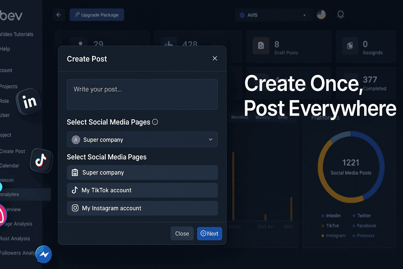 Create Once, Post Everywhere Craft your content once and publish it across all your social channels with a single click. Consistency, simplified.